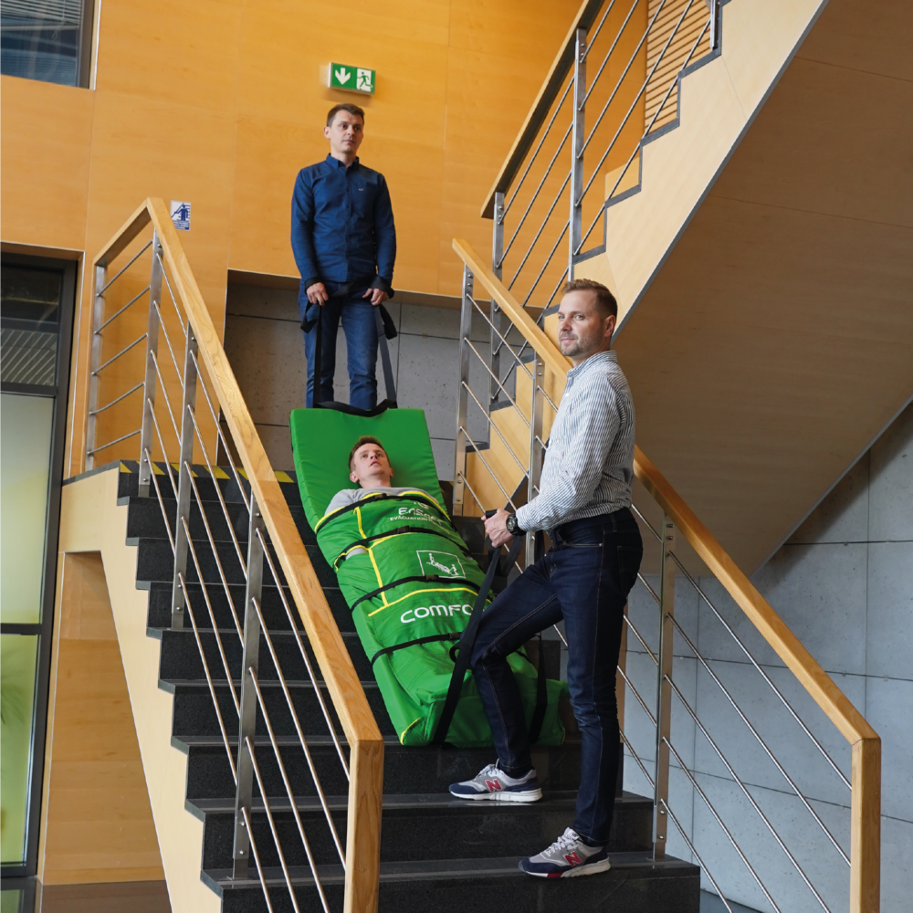- Możliwa ewakuacja w wąskich klatkach oraz krętych schodach