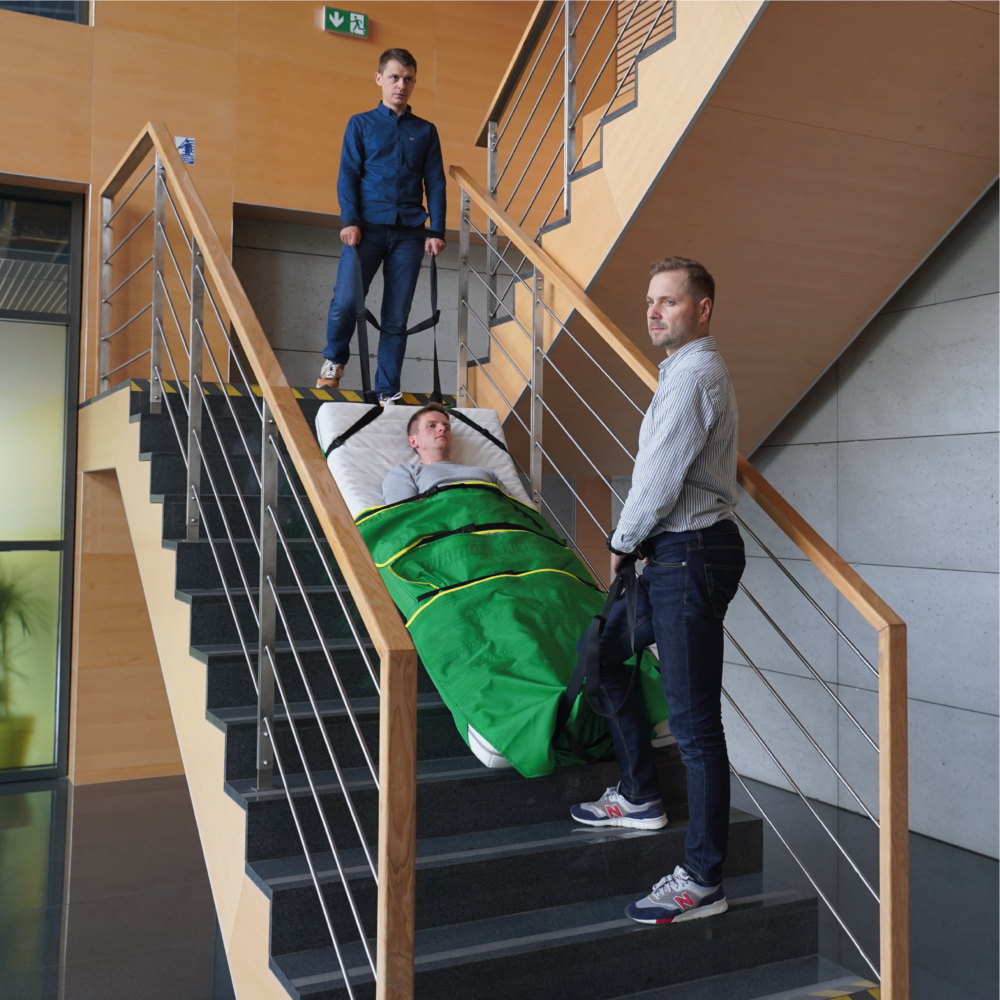 - Możliwa ewakuacja w wąskich klatkach oraz krętych schodach
